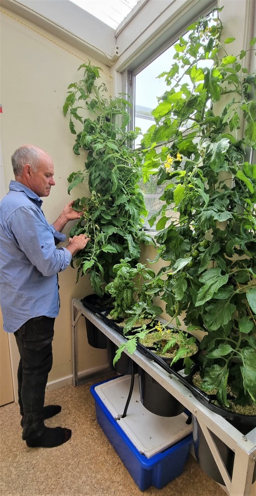 David has also brought his mastery of hydroponics to Maatsuyker. Using old aluminium framing from a solar panel array that blew away in a storm one evening some years ago, David has built our very own hydroponics jungle in the entry to our cottage where sun and warmth are best found. Two tomato vines, donkey balls and choc cherry (by the way, that’s the tomato varieties if you were wondering why I just included those words in this sentence), are now bursting with baby fruit and happily outcompeting the basil and coriander for light. The caretakers who follow us better like tomatoes….